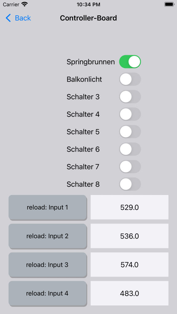 App zur Steuerung des AVR-NET-IO-Boards. Es können die 8 Ausgänge geschaltet und die 4 Eingänge ausgelesen werden.